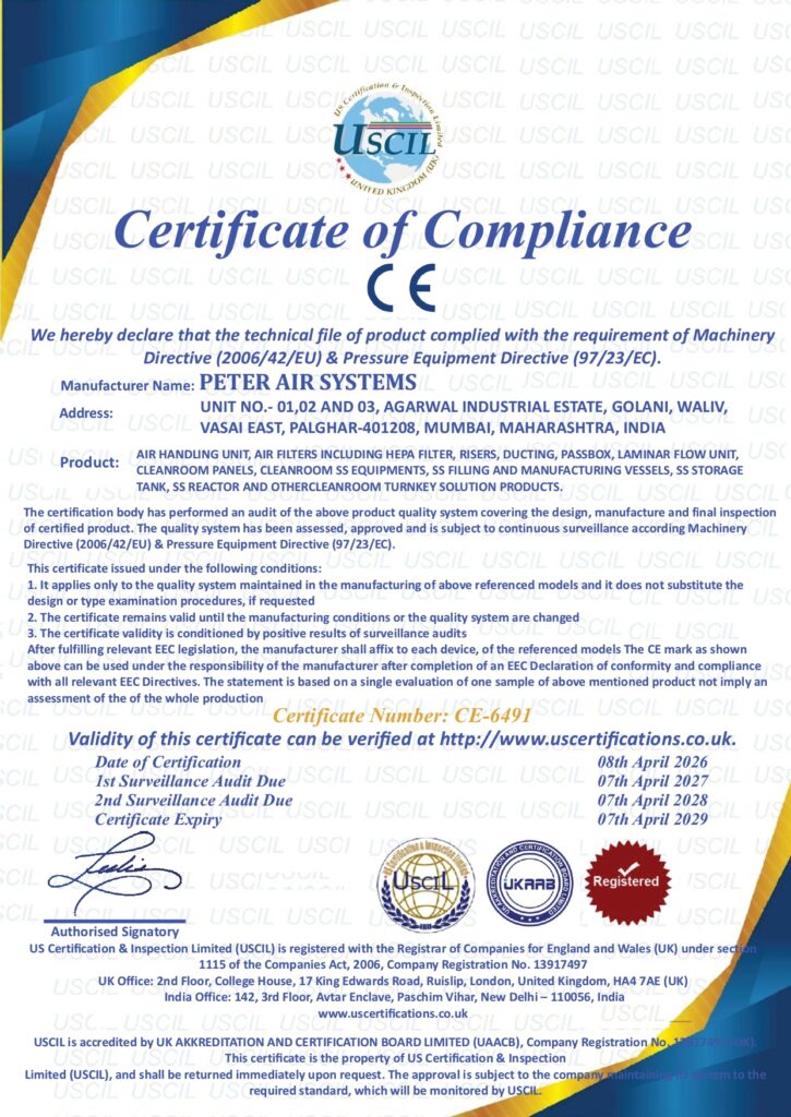 At Peter Air Systems, we take pride in delivering top-quality solutions that meet global standards. Our certifications reflect our commitment to excellence, innovation, and compliance with industry norms.